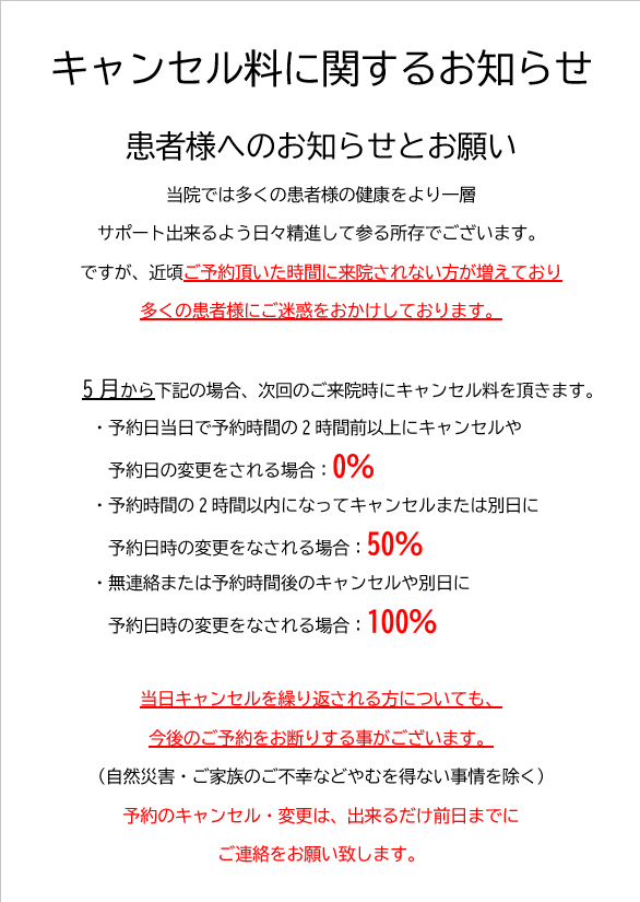 キャンセル料に関するお知らせ